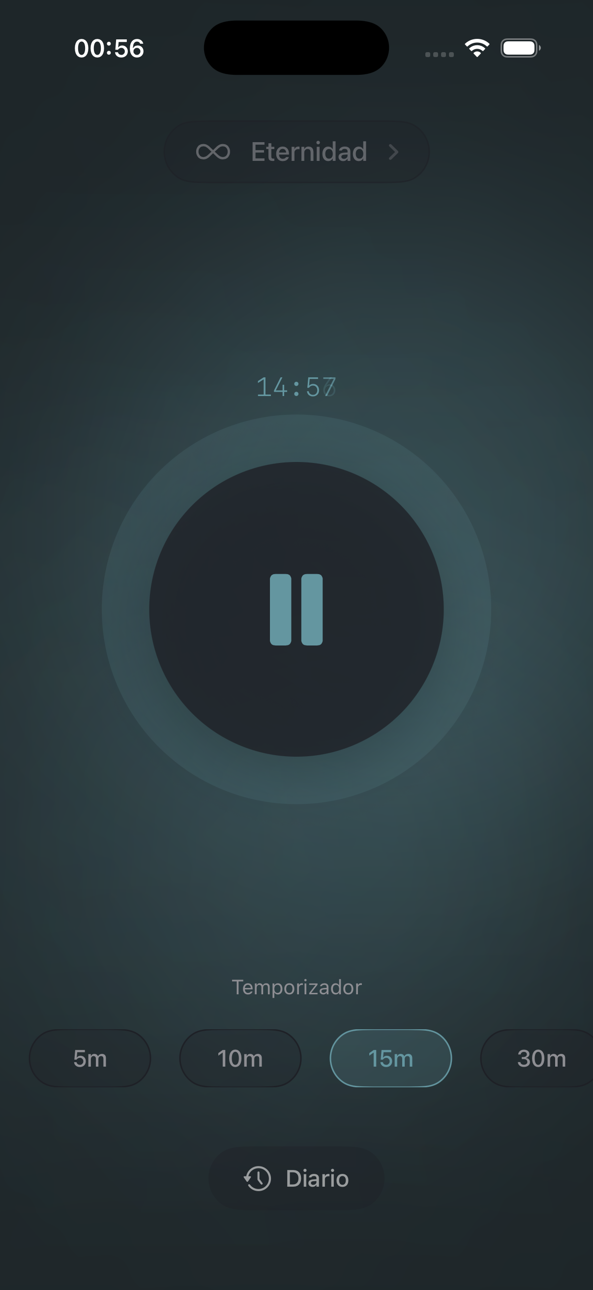 Aplicación minimalista de sonidos ambientales y temporizador enfocada en el alivio rápido de la ansiedad.